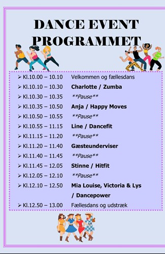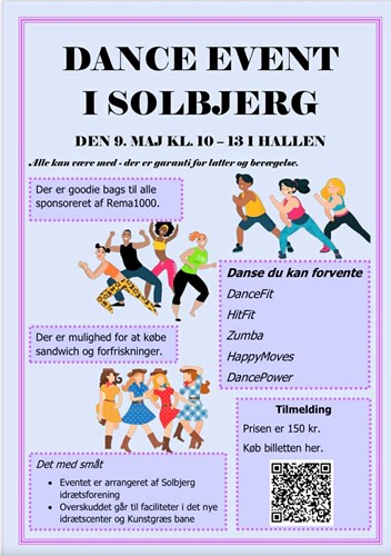 Du kan også købe billet i døren på dagen, så kom og vær med til nogle fede timer i dansens univers med instruktører både fra Fit og Sund Solbjerg og Solbjerg IF Gymnastik.